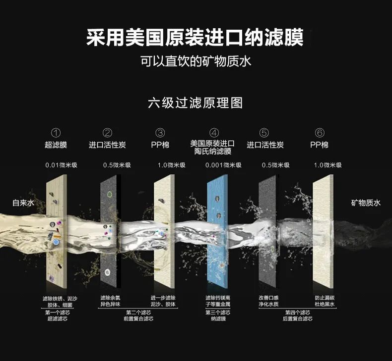 早在新冠病毒爆發之初,很多地方就建議暫停使用桶裝水以及少飲用生水,因為無法保障生產水的所有環節都安全可靠。如果家中有一臺既能過濾水中的病毒、細菌等有害物質還能保留有益的礦物質的礦泉直飲機,我們就可以完全告別對飲水安全的擔憂了。礦泉直飲機其技術核心為濾芯裝置中的過濾膜,過濾精度是0.001微米,而以病毒那龐大的體型是完全無法通過那狹小的通道的!